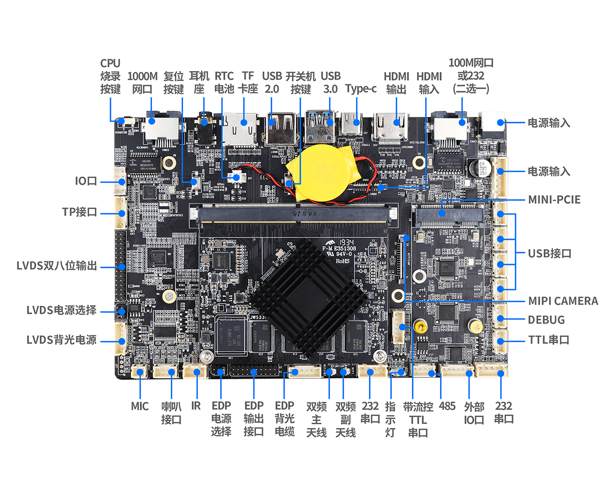 多種顯示輸出接口 豐富的擴(kuò)展接口 支持Android系統(tǒng)定制 支持多種主流觸摸屏 64位高性能CPU 多種網(wǎng)絡(luò)接口,支持上網(wǎng)和通話