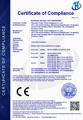 智能一體機系列3C證書